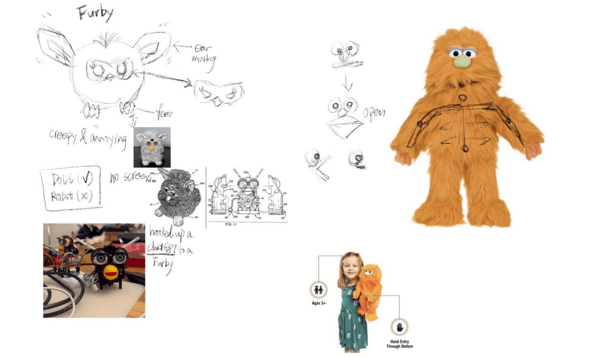 To challenge the "cold and hard" stereotype of traditional robotics, I developed a furry, soft-textured puppet robot. This tactile approach aims to enhance emotional comfort and evoke stronger attachment responses, similar to a child's bond with a cherished toy.